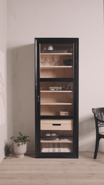 Display cabinets from Nordal will spice up any home with their aesthetics and stylish design. These beautiful pieces of furniture are among our most popular items with their countless usability options, and we completely understand why. Nothing but your imagination sets the limit for how you choose to use them. Aim for an exclusive look in the kitchen or dining room and fill Nordal's iconic metal display cabinet with exquisite plates and cutlery, beautiful glasses and pitchers, decorative dishcloths, as well as detailed vases and other interior items deserving to be showcased behind transparent glass doors. Alternatively, utilize a wall-mounted brass display cabinet in the bathroom, where space may be limited, for storing makeup, creams, towels, and jewelry. In the living room a teak wood display cabinet with woven doors will add stylish charm while functioning as a beautiful hiding spot for games, knitting needles and yarn, piles of paper, electronics, and other items we surround ourselves with that don't necessarily adorn the surfaces of our homes. In Nordal's webshop, we have a wide selection of display cabinets in different materials, designs and colors, and we always guarantee durable materials and timeless design that will endure in any decor for years to come. When you invest in a display cabinet from Nordal, you're not only buying a piece of Danish quality furniture but you are also acquiring a piece of furniture that becomes even more beautiful with time.