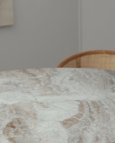 ERIE wordt geleverd met een uniek tafelblad van marmer met een prachtige kleurenspel in natuurlijke nuances.